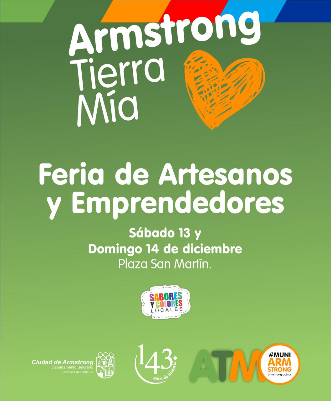 La Municipalidad de Armstrong abrió la convocatoria para artesanos y emprendedores de todo el país que les interese participar de la fiesta Armstrong Tierra Mía por el aniversario 143 de la ciudad, que se celebrará en plaza San Martín los días 13 y 14 de diciembre.