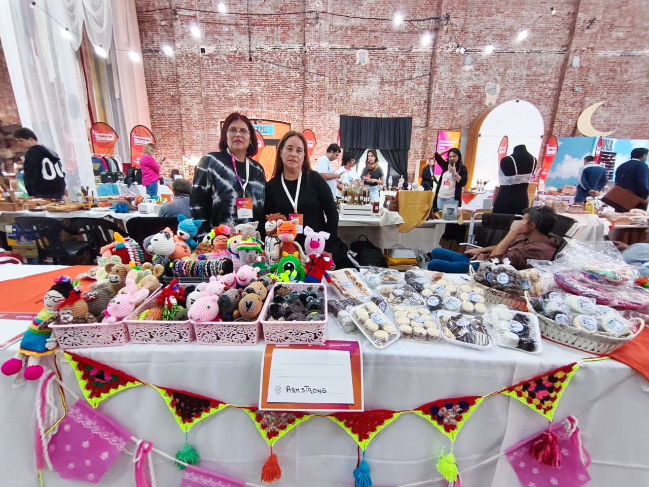 Representando a nuestra comunidad asistieron la secretaria de Desarrollo Productivo CPN Julieta Lambertucci, la promotora de emprendedores del Banco Solidario Florencia Bordigotti, y las emprendedoras Malvina Sisnero con productos de panificación, y Claudia Gómez con tejidos a crochet.