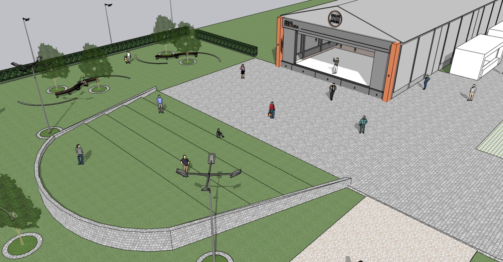 El proyecto llega desde la Secretaría de Turismo del Ministerio de Desarrollo Productivo de la Provincia de Santa Fe quien asume el costo de dicha instalación, mientras que el municipio se hace cargo de los trabajos en la parte exterior donde se construyó un playón con adoquines y, a continuación, un movimiento de suelo anticipa una especie de anfiteatro de césped donde el público podrá ubicarse con reposeras, mantas, o sobre el mismo suelo.